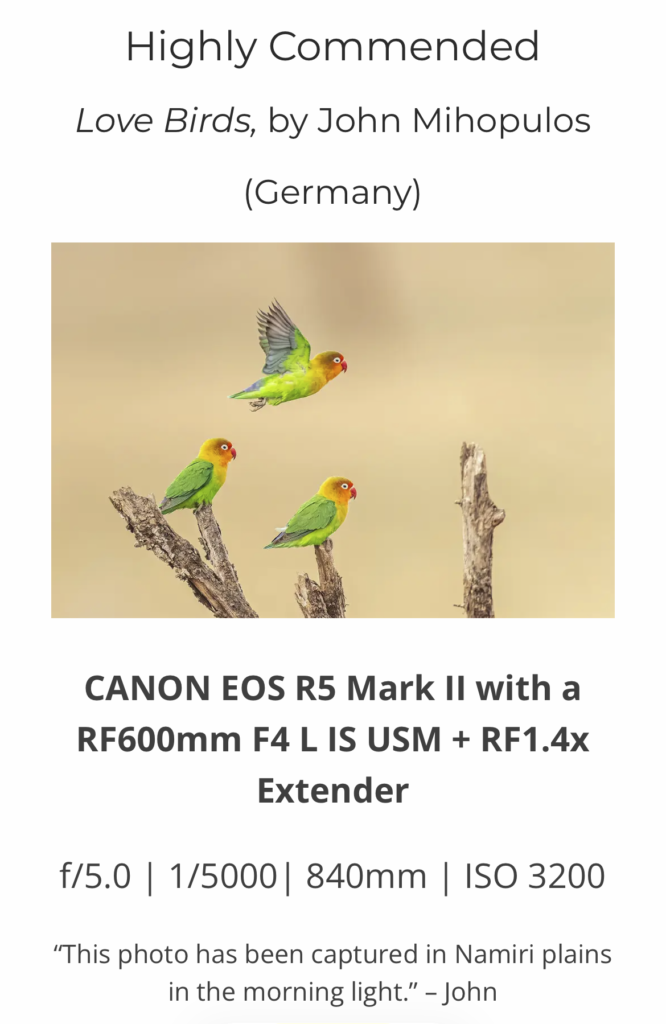 7th place in the competition category, ANIMAL KINGDOM – Part of the Amateur Photographer of the year, commented by the AP team and guest junge the Professional Photographer: Ben Hall